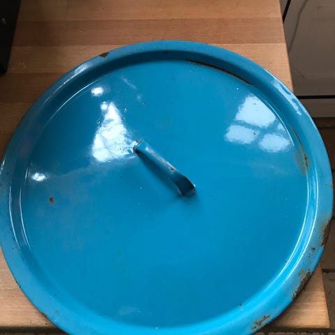 2 madam blå gryde låg diameter23.5 og 28.5 krans 3 cm mindre 30kr.for begge