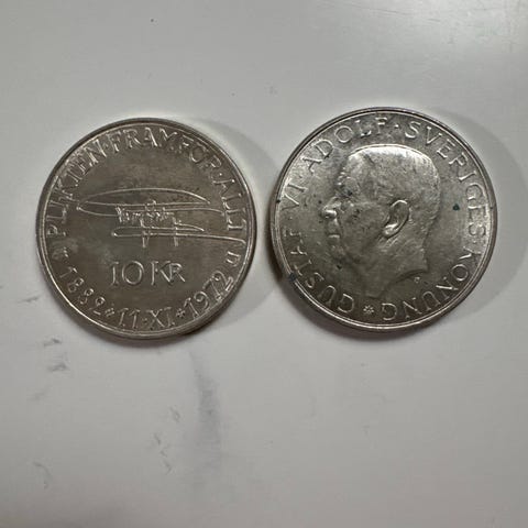 4 stk 10 kr tronskiftemønt 1972 i sølv. 300 kr pr stk