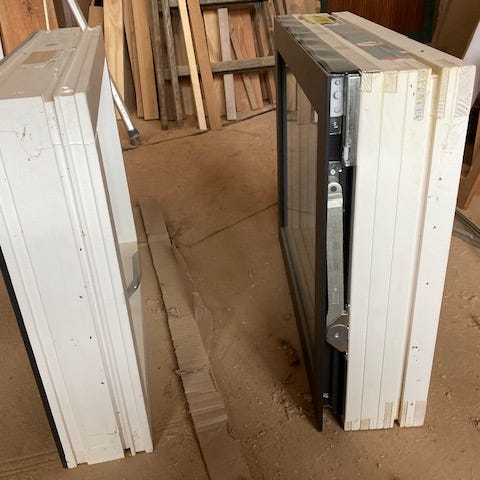 2 VELFAC vinduer i træ med alu, hvide og 2 lags fra Nov 2017. 1 vindue er et fast vindue og måler 89 x 96 og sidste vindue er et db. vindue kan åbnes i top og måler 196 x 96.prisen er for begge 2