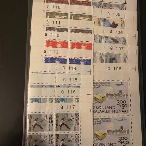 Grønlandske postfriske øvre 4-blokke med marginalnumre