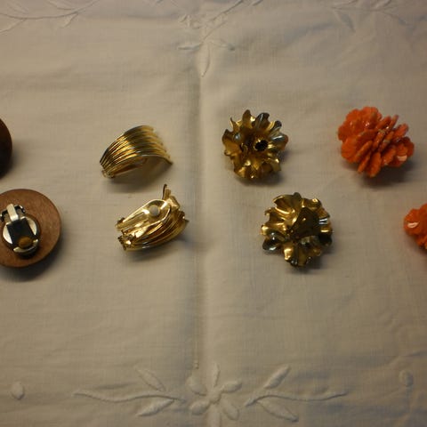Et par fine vintage øreclips af oval teaktræ. Bagpå er der sølvfarvede clips. Der er nogle små prikkede mærker på teak delen, men eller er de i god stand. Da de er et arvestykke kender jeg ikke materialet på clips delen eller deres mærke.