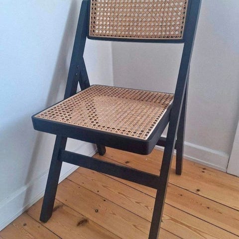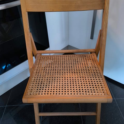 Fineste klapstol med den klassiske franske flet. Stolen er i fin stand, solid og holdbar. Fletten fejler ingenting. Brugeren hist og pist og særligt på benet som ses på billedet. Prisen er fast
