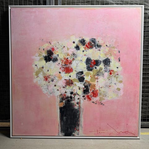 Flot originalt blomstermaleri af Tove Andresen. Pink farver. 140x140 cm