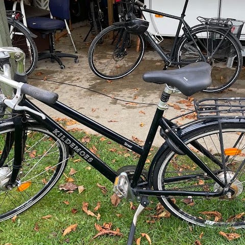 Netop serviceret sort retro Kildemoes damecykelmed 5 indvendige gear. Hjulstørrelse 28 tommer, stelstørrelse 56 cm og stelnummer BK 41126 G. Ny klokke og nye reflekser. Derudover en god blød sadel, støttefod, bagagebærer samt fod- og håndbremse. Der er kvittering på cyklen.