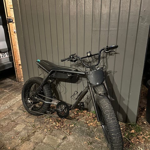 Har denne mega fede el cykel som du selv kan stille hastigheden over en app Max 55 km/t den har gas håndtag så du behovet ik selv cykle. Der medfølger lader og kvit.