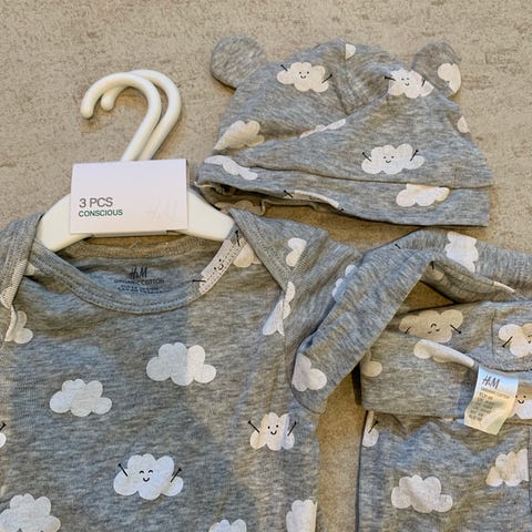 Ribbet Bomuldssæt til nyfødt - str 50 - kun vasket, aldrig brugt