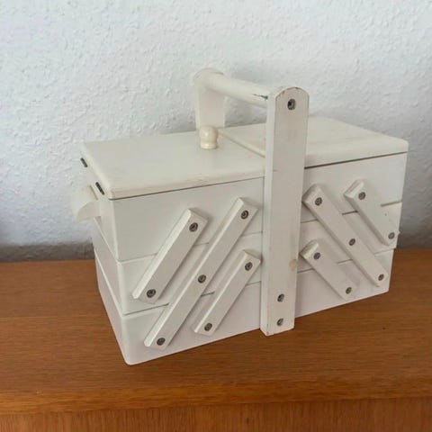 Stor hvid sykasse i træ med 5 rum Syskrin opbevaring smykkeskrin hobbyskrin