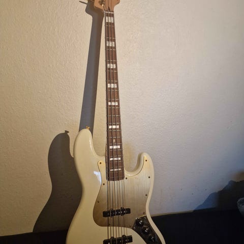Squier Bas Arctic White sælges da jeg ikke får den brugt. Den er købt i januar 2025 og kun brugt få gange. Fungerer som den skal.