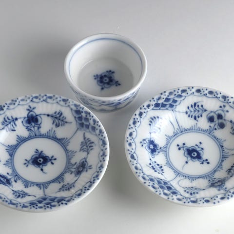 Kongeligt porcelæn musselmalet riflet halvblonde.