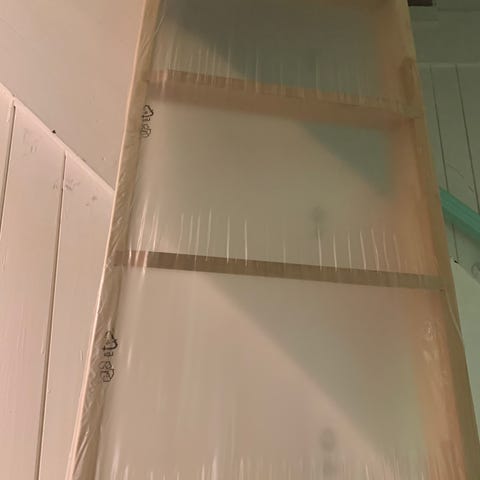 Fin hvid hemsestige med gelænder, der kan afmonteres. Den er 244 cm lang.