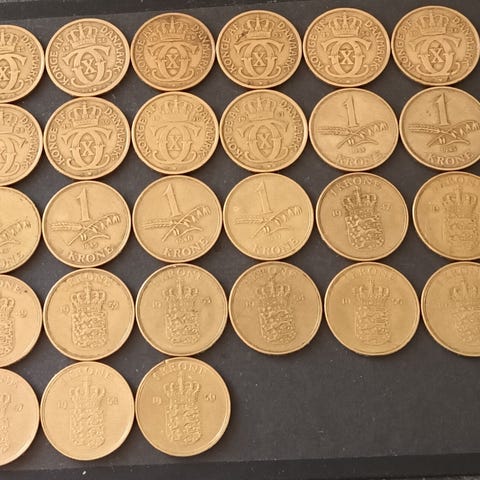Danmark 13 stk. forskellige 1 kroner