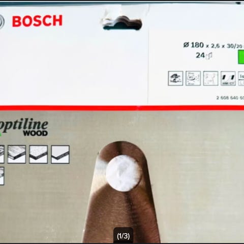 Ny og ubrugt savklinge fra Bosch, Ø 184 X 2,6 X 30 mm hul, 24 tænder, Clean Cut, Long Life, Optiline Wood, fejlkøb, Jeg har et lille værksted hvor alting skal væk