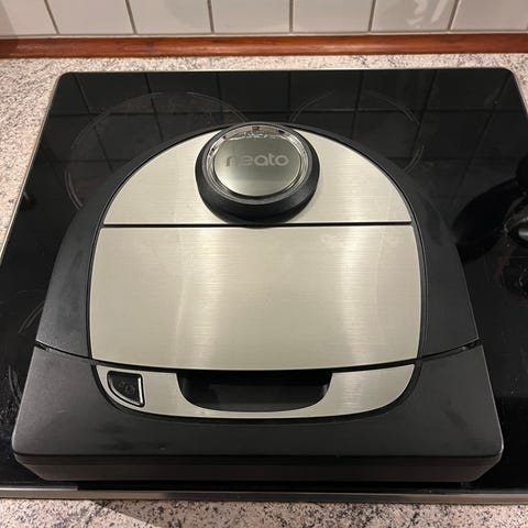 Neato Botvac D4 robotstøvsuger i sort farve. Enheder til automatiseret rengøring af gulve med avanceret navigationssystem. Indeholder opladestation og børsteudstyr. Velegnet til hjem med hårde gulve og tæpper.