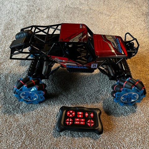 Hurtig og velafbalanceret fjernstyret bil med fjernbetjening og ladekabel USB. God kvalitet. Brugt nogle få gange. I god stand. Købt i august 2022 hos Morfars.dk. Der medfølger et print af den mail, vi fik fra Morfars med gode råd og links til kom i gang-videoer.