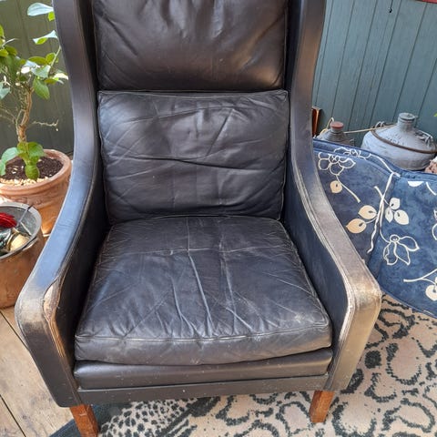 Sælger min øreklapstol designet af Børge Mogensen. Smukt, klassisk design — men den trænger til en omgang.