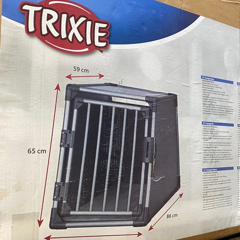 TRIXIE Gulliver Transportbur til kæledyr lavet af grå og hvid plast med metalgitterdør. Buret har en låsbar dør og opbevaringsrum på toppen til tilbehør. Egnet til transport af små til mellemstore kæledyr. Byret kan skilles ad på modstemmer for transport.