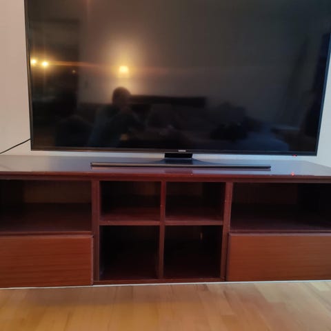 Pænt tv bord med indbygget skab og drejeplade, så du kan vinkle dit tv.