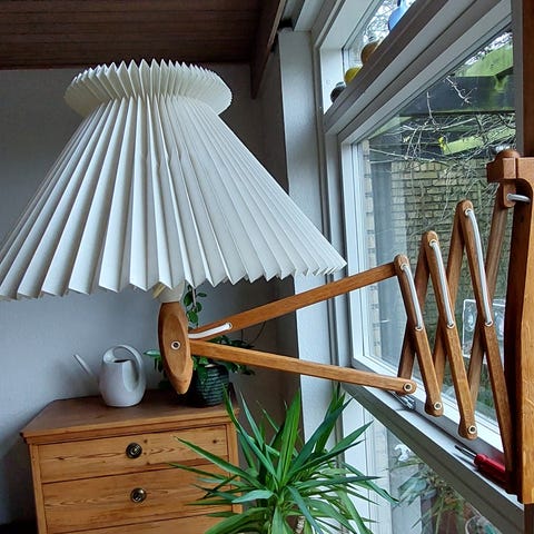 Super lækker sakselampe fra populære Le Klint. Stellet er "gammelt" men skærmen er købt for et par år siden, så den er uden slid og fejl.
