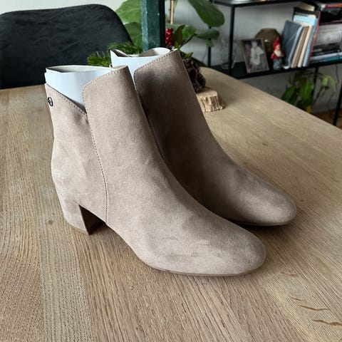 Tamaris støvler i størrelse 39. Støvlerne har en kombination af materialer i flere farver og en hæl. Velegnede til almindeligt brug.