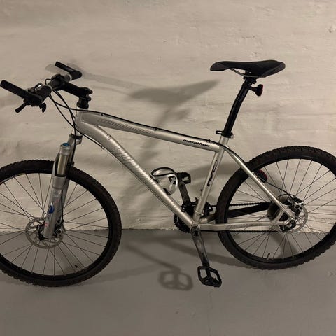 Den er blevet brugt i skove og grusgrave. Selv om den ser godt brugt ud så er det en kanon MTB og alt fungere.