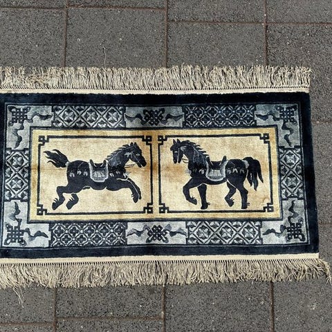Oprindelse: Kina; Model: China silk on silk; håndvævet tæppe af silke på silke, 135 x 60 cm, det 21. århundrede, i meget god stand og professionelt renset. Klik på den blå "gå til varen" knap, for at købe eller byde på denne vare. Den samlede pris vil blive vist inden du afgiver dit bud.