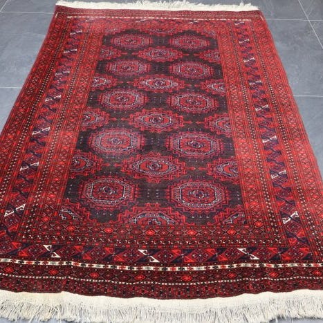 Model Türkmen Buchara fra Rusland, tæppe i uld på uld, mål 207 cm × 136 cm, fremstillingsperiode slutningen af det 20. århundrede, i meget god stand. Klik på den blå "gå til varen" knap, for at købe eller byde på denne vare. Den samlede pris vil blive vist inden du afgiver dit bud.