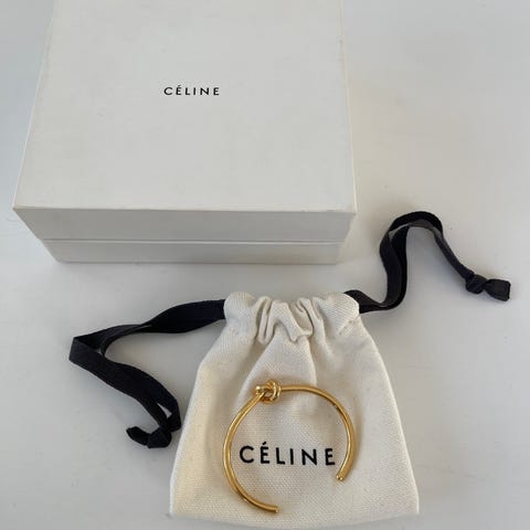 CELINE Chunky Curb x Phoebe Philo armbånd i metal til kvinder, fremstillet i Italien, længde 23,5 cm, bredde 3 cm, tykkelse 0,75 cm, indre diameter 6,85 cm, ydre diameter 8,95 cm, vægt 320 g, i meget god stand med små brugsspor. Klik på den blå "gå til varen" knap, for at købe eller byde på denne vare. Den samlede pris vil blive vist inden du afgiver dit bud.