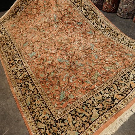 Et smukt håndknyttet originalt kinesisk Gohm silketæppe.