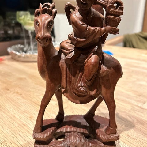 Rotskulptur af en hvilede rådyr i træ, oprindelse Kina, dateret til det sene Qing-dynasti (19. og begyndelsen af 20. århundrede), mål: 42 cm høj, 22 cm bred, 9 cm dyb, i god stand med normale tegn på brug. Klik på den blå "gå til varen" knap, for at købe eller byde på denne vare. Den samlede pris vil blive vist inden du afgiver dit bud.