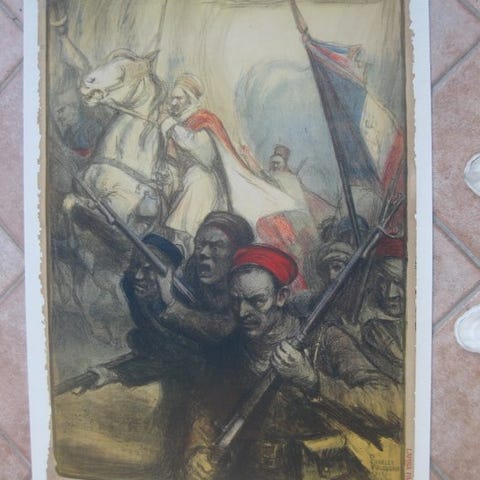 Generelt i rimelige forhold, spor af foldninger, manglende i det øverste hjørne med 9 cm, og et rif på en lang side. Tjek venligst billederne for bedre at vurdere det tilbudte parti.