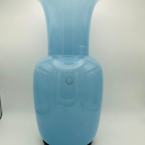 Venini opalglas mundblæst vase i mintgrøn, designer Paolo Venini, højden 30 cm, diameter 14 cm, fremstillet i Italien i 2023, ny. Klik på den blå "gå til varen" knap, for at købe eller byde på denne vare. Den samlede pris vil blive vist inden du afgiver dit bud.