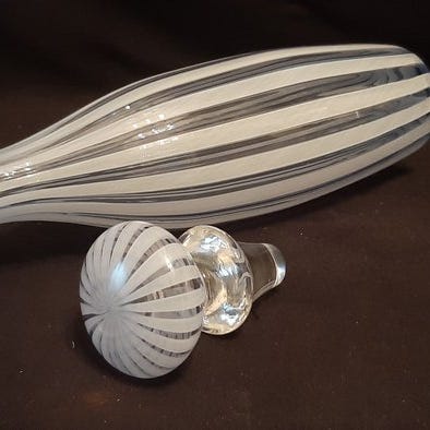 Udført med teknikken Opalino, Soffiato 'opalini' i indkapslet glas. Denne model er kendetegnet ved den karakteristiske bølgende form, og udviklingen skaber en ny variant af dens klassiske udgave.