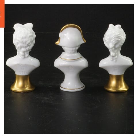 Napoleon-buste i hvid biscuitporcelæn på blå glasert firkantet sokkel, 27 cm høj, cirka 13,5 cm bred, fremstillet i Frankrig omkring 1920–1950, i fremragende stand. Klik på den blå "gå til varen" knap, for at købe eller byde på denne vare. Den samlede pris vil blive vist inden du afgiver dit bud.
