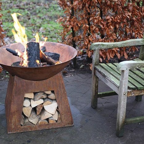 Når metal oxiderer, skaber det et smukt og autentisk rustent udseende. En havebrand kan skabe en hyggelig atmosfære, der virkelig fanger opmærksomheden. Denne runde bålfad har laserudskårne former af træer og hjorte, hvilket skaber et smukt syn, når det er i brug, mens rusteffekten forårsaget af ild, vejr og tid vil gøre patinaen endnu mere autentisk.