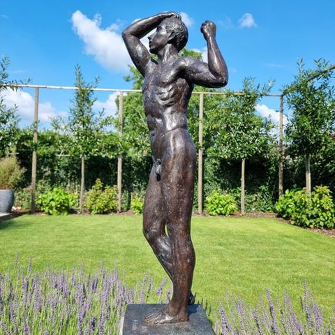 Fremstillet af høj kvalitet bronze og færdiggjort med en smuk multicolour patina, er den egnet til både indendørs og udendørs brug.