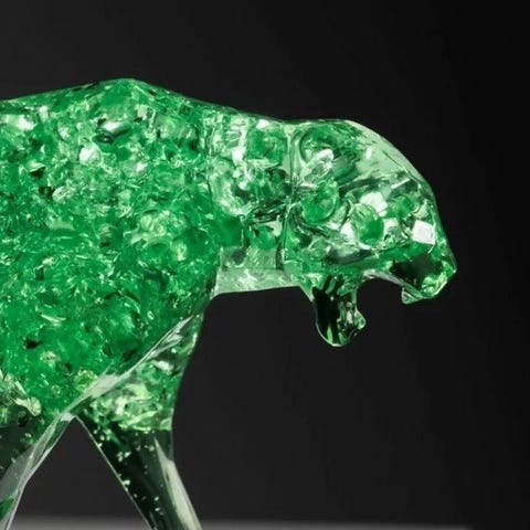 I denne udgave blev der tilføjet bobler til støbningen for at designe et unikt mønster i hver skulptur.