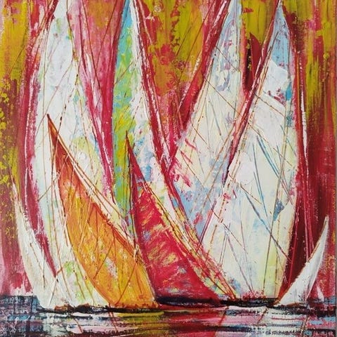 Originalværk af den palmesanske maler Pep Coll (1959-), uden signatur, men med hans forfatterskab, baseret på andre værker, jeg har i min besiddelse. Malet med blandede teknikker på tekstureret papir, forestiller det en abstrakt scene med en palette af blålige og lyse nuancer.