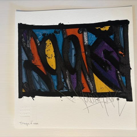 JonOne: To Believe, original tryk fra 2019 i formatet 56 × 76 cm, nummereret HC ud af 25 og håndskrevet signeret af kunstneren, i fremragende stand. Klik på den blå "gå til varen" knap, for at købe eller byde på denne vare. Den samlede pris vil blive vist inden du afgiver dit bud.