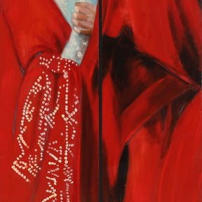 Dit olieverfschilderi af Louis Nagelkerke viser en nøgen kvinde og en panter.