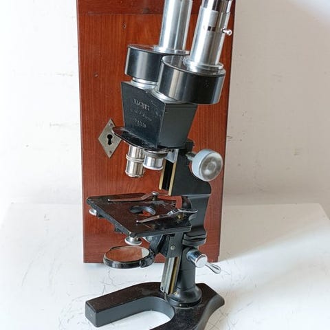 Ideel stykke for samlere, professionelle inden for videnskabelige instrumenter eller til industriel teknisk dekoration. Optisk udstyr brugt af militæringeniører til topografi og artilleri. Vintage atelier-/videnskabsdekor (mikroskop, sekstant, kompas, teleskop, lup, monocul,