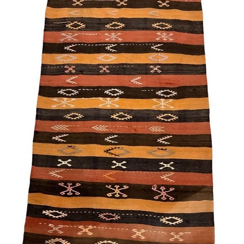 Dette er et fantastisk tyrkisk Usak Kilim lavet i 1940'erne til 1950'erne, en meget livlig tilføjelse til dit hjem fra hjertet af Anatolia. Kilims blev ikke kun brugt som praktiske genstande, men også som talismans for held, frugtbarhed og velstand i Anatolia i tusind år. Du kan få en del af denne unikke historie ind i dit hjem!