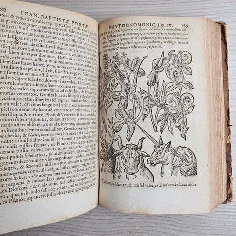 Dresden / Leipzig & Frankfurt: Hos Martinus Gabriel Hübner, 1687-1688. 2 bind. Bind I: [47], 720, [56] sider; Bind II: [33], 591, [79] sider. 17,5 cm x 9,5 cm. Fuldt vellumindbundet med guldbelagt label på ryggen og røde kanter. Senere udgave af dette betydningsfulde værk om barok naturhistorie, der først blev udgivet i 1612, og som klassificerer dyr gennem teologiske og emblematiske linser. Første udgave i denne form med