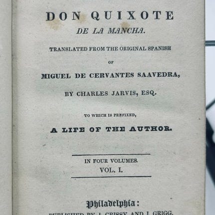 Den opfindsomme ridder Don Quijote af La Mancha med Sancio Pancia, hans væbner, af Michele Cervantes de Saavedra. Oversat af Bartolomeo Gamba. Illustreret udgave. Milano: Hos Libreria Dante Allighieri af Enrico Politti, (1870).