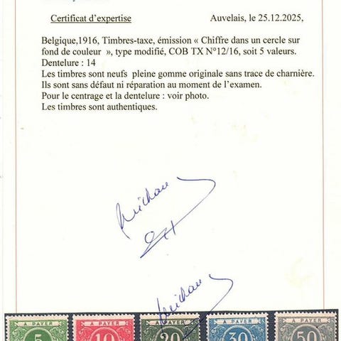 Geografisk oprindelse: Belgien – Eupen & Malmedy; Titel: COB OC 38-54 + 62-68 katalogværdi 1625€; Tilstand: mint uden gummi, med certifikat. Klik på den blå "gå til varen" knap, for at købe eller byde på denne vare. Den samlede pris vil blive vist inden du afgiver dit bud.