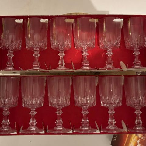Smukt sæt af 6 antikke kristal Val Saint Lambert glas, model Lalaign. Belgien, begyndelsen af det 20. århundrede.