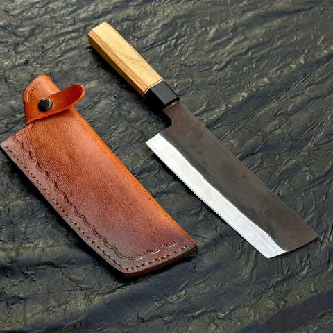Lædercover inkluderet – et håndsyet, beskyttende hylster, der beskytter bladet og tilføjer et luksuriøst præg, hvilket gør det til en ideel gave til kulinariske entusiaster,