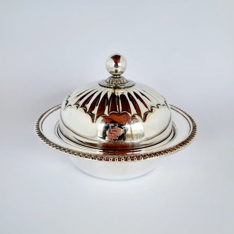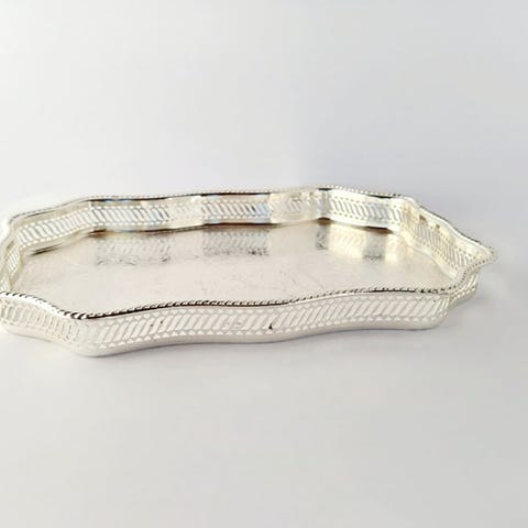 Dette er et elegant sølvbelagt sæt, der blander klassisk viktoriansk-inspireret stil med daglig funktion. Dette smukt kuraterede sæt inkluderer: