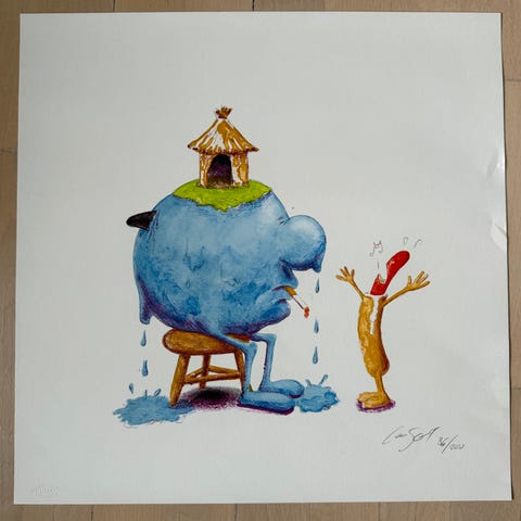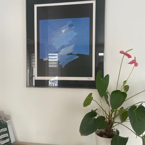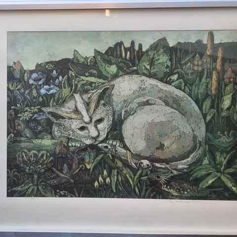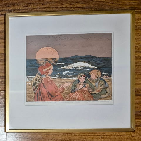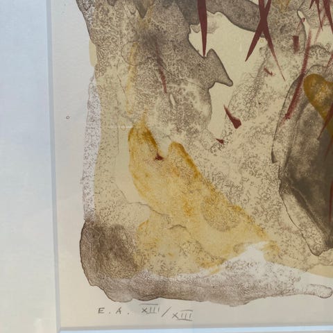 Kunstnerens eget tryk. Indrammet. Lysmål cirka 35,5 x 29,5 cm. Rammemål cirka 52 x 49 cm. Passepartout med huller.