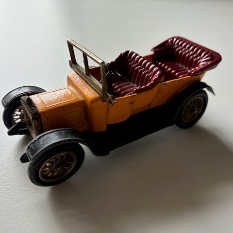 Blå Messerschmitt (1955) produceret af Gollnest & Kirsel KG, H: 5,5, cm, L: 17 cm og B: 7 cm. Desværre er forhjulet faldet af. Sælges derfor for kun