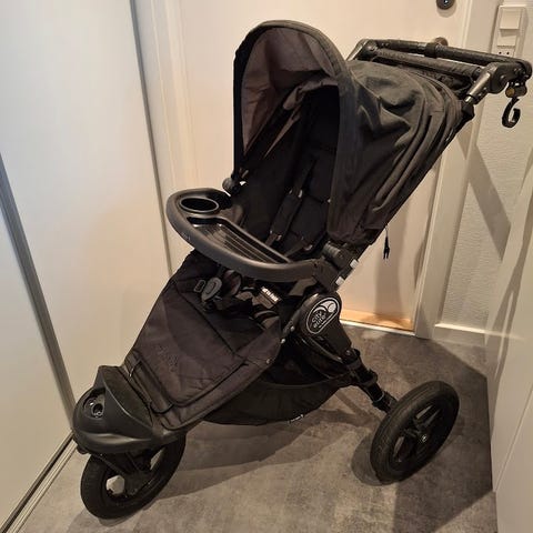 City elite Babyjoggern med sele, punktfri hjul, taske og håndbremse i rigtigt fint stand.
